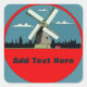 Windmill Red Round Add Text Square Sticker