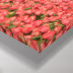 Canvas print of a landscape with a windmill and pink tulip flowers in rows on a bulb farm under a grey sky in the countryside in the Netherlands in spring. Great decoration on your wall!