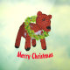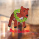 Reindeer with green wreath around its neck. Curved text below reads "Merry Christmas" Image of crocheted toy doll in in brown and white.