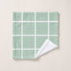 This bath towel set features a minimalist window pane grid pattern in white on sage green.