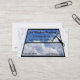 Unique business card for window washers, cleaning service or janitorial. Window with blue sky and puffy clouds with bubble background.