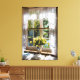 Window with lace curtain and tulips canvas print