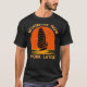 My 11 yo wore adult XL (5’7” 165#). The 8yo is small framed. She wore adult small and tied it in the back. Grandma wore adult large with long sleeve shirt underneath. Tall girl adult medium. Dark haired male adult large. Good quality dark Heather gray, Gildan brand shirt. -it was next up from basic choice and cost about $20 per shirt. Not too thick or thin. Washed and dried well, no major shrinkage. Not see-through. Can wear a bra under it fine. Screen print is just as shown and well done, front and back.