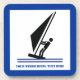 Windsurfer on board black, blue windsurfing beverage coaster displaying a minimalist pictogram icon of a black silhouette windsurfer and your text on white background with blue border.