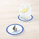 Windsurfer on board black, blue windsurfing custom coaster design showcasing a minimalist pictogram icon of a black silhouette windsurfer and your text on white background with blue border. Personalize it and change text with monogram, name or your message. This modern, minimalist design makes a perfect gift for the windsurfer in your life.