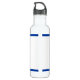 Windsurfer on board black, blue windsurfing stainless steel water bottle featuring a minimalist pictogram icon of a black silhouette windsurfer and your text on white background with blue border. The modern, minimalist design makes a perfect for the windsurfer in your life.