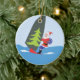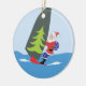 This Christmas ornament features Santa Claus windsurfing on the ocean to deliver presents on Christmas eve.