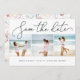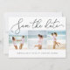Announce your beach wedding or destination wedding in chic style with these modern and romantic save the date cards. Three square photos are arranged side by side, with "save the date" overlaid in elegant handwritten script lettering. Personalize beneath with your names, wedding date and location. Cards reverse to a pattern of watercolor seashells, starfish and coral for a subtle touch of beachy charm.