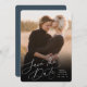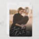 A simple and elegant design with your wedding details aligned at the bottom, this vertical photo save the date features delicate, ethereal hand lettered script. Personalize with your names, wedding date, and location alongside, and add additional details to the back.