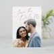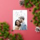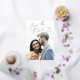 A simple and elegant design with your wedding details aligned at the top, this vertical photo save the date features ethereal hand lettered script in real rose gold foil. Personalize with your names, wedding date, and location alongside, and add additional details to the back. Due to the delicate nature of the lettering, this style is recommended for vertical photos with ample light or white space at the top.