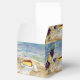 A bottle of red wine tilts against a half full wine glass on the beach. A platter of cheese is ready to be cut, as well as, a second wine is ready to be filled. Seashells are intermingled on the sand beach. Soft pastel colored ocean waves are splashing in the background. Painting rendered in watercolor. Make special red wine beach party party favor gift boxes with your own text and images using the "Customize It" option for personalized holidays and special life occasions wine themed art gifts!
