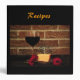 This binder features a simple image of a glass of wine, a plate of cheese and three red flowers against a rustic red brick wall. A smaller image is repeated on the back. The text on the front and spine can be customized or removed.