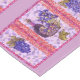 This pointillism inspired group of grapes and centered, a wine bottle with a basket of grapes and a bunch of irises, art by Kristie Hubler, perfect for a Parisian or provincial picnic at home on the kitchen or dining room table! Lilac pink, blue violet iris, reddish orange, and yellow green colors