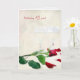 Two glasses of white wine and red rose for 15th anniversary congratulations
