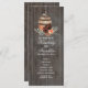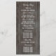 Rustic barn wood, burgundy flowers, and wine barrel wedding programs