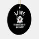 Lightweight, smooth, pure white ornament with nice sheen. Perfect size to be seen from across the room ... and to attract closer inspection! Price was great for ordering enough for the whole family! Clear, bold black design just as requested. Matches the order exactly. Just so nice!