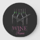 Very classy wall clock perfect for the 'Wine Connoisseur". Oil painting image of three wine bottles with the words "Wine Time". Makes a perfect addition to your wine tasting room,wine cellar,vineyard,winery or home bar. This stunning wall clock makes a wonderful housewarming gift to someone special!