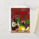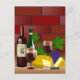 Lovely scene of two glasses full of red wine, and two wine bottles, one red and one white (green). A background of a brick wall and purple grapes and green leaves, along with a wheel of cheese, sliced open. This elegant vineyard, winery or wine making scene makes a great customizable or personalized gift for the wine shop owner, wine tasting party or just the lady who loves to wine and dine. All Designs Copyright © 2012 www.CuteComfy.com