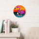 Wine drinking pink Flamingo personalized Large Clock