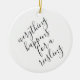 Celebrate the season with this wine gift—a funny customizable Christmas ornament featuring the phrase “Everything Happens for a Riesling” in modern hand-lettered script. These personalized Christmas ornaments are custom on the reverse side, where you can add a favorite photo and greeting—perfect as photo ornaments for a couple, husband and wife, or as best friend ornaments. A simple yet thoughtful holiday keepsake, this design makes a unique gift for mom, a girlfriend, or a wine-loving friend. Explore more coordinating party decorations and designs by Victoria Grigaliunas at www.zazzle.com/dotellabelle