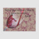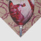Tissue paper with image of a glass of wine against glass rim wine stains and a quote by Rumi.