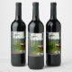 Wine Glass and Vineyard Design Wine Label with customizable text.