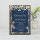 Wine Glass Balloons Gold Mandala Blue Retirement Invitation