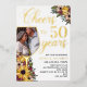 Charming gold foil 50th wedding anniversary party invitation with the outline of a wine glass printed in gold foil and filled with a photo of the couple celebrating their 50th wedding anniversary. Cheers to 50 years in gold typography and the married couple's names in gold foil too. The year is customizable so it works for any wedding anniversary! 50th wedding anniversary party invitation with sunflowers and gold foil. Sunflower themed wedding anniversary party invitation personalized with a photo and the names in gold.