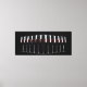 Wine glasses with red wine lined up in a row to form a triangle on black background.