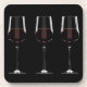 Wine glasses with red wine on black beverage coaster