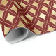 Elegant wrapping paper features gold metallic retro carnival style harlequin diamonds pattern on a wine red background.