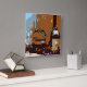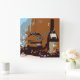 Contemporary kitchen clock that makes a great housewarming gift. This wine and grapes design is perfect for a cafe look in modern styling to match contemporary home decor and modern kitchens. Beautiful soft neutral colors of sand and blue with a cut paper style artwork from a photograph that I took several days ago of a still life set up that I'm doing another artwork of. CricketDiane Artist / Designer 2017 and Cricket House Studios Art and Design - Modern Decor, Contemporary Home Furnishings, Contemporary Kitchen Decor,