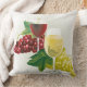 Throw pillow shown in white with a graphic print of grapes and wine. Customize this item or buy as is.