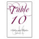 Custom Monogram Wedding Table Number Card with Deep Purple Wine Color Fancy Script Font. Design by Elke Clarke ©. Customize with your personal information, wedding date and colors. Order one per table with each table number but still receive the bulk discount for total number ordered.