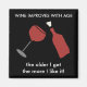 A wine glass & bottle with words saying wine improves with age the older I get the more I like it makes a good wine fridge magnet for wine parties.