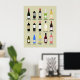 Add a fun touch to your kitchen or any room with this poster that features illustrations of bottles of wines in a simple doodle style with the different varieties of white, red and sparkling wines identified below each bottle such as chardonnay, pinto noir, malbec, champagne and more. It's the perfect decor for wine lovers and connoisseurs.