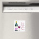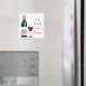 Cute square magnet with graphics of a wine bottle and wine glass with red text reading, Eat, Drink, and be Happy. Cute little gift idea, who doesn't like refrigerator magnets.