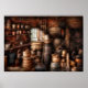 To make wine, one must first possess grapes. In order to extract the spirits from the grapes, one must confine them in a liquid form for a while. Barrels are a basic necessity to make wine. It adds unique character and so forth. This shop makes said barrels. Looking for POSTERS of this or any of these designs?