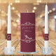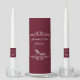 Personalize special candles for your wedding ceremony with a Wine Peacock Flourish Wedding Unity Candle Set. Candle design features an elegant peacock adorned with flourishes. Personalize with the groom and bride's names along with the wedding date, and taper candles with surnames. Additional wedding stationery and gifts available with this design as well.