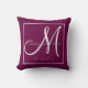 Personalized wine purple, gray and white monogrammed pillow with your bride and groom names and wedding date in a script font overlay design on a solid color background. Elke Clarke© Makes a great gift for newly weds. Available at www.zazzle.com/monogramgallery. Makes a great gift for newly weds. Great trendy, elegant accessory for your bedroom, favorite chair, fun home decor in your family room or formal decorative addition to your living room. Other styles and colors available in our shop. Customize with your names, monogram initial and wedding date.