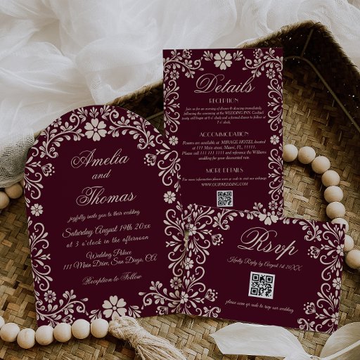 Wine Red Mexican Floral Wedding Invitation