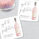 Sophisticated Wine Aged to Perfection Square Paper Coasters. These elegant square coasters feature a large watercolor pink and gray wine bottle on the right side for a contemporary, stylish look. On the left, “Aged to Perfection” is displayed in graceful script, with the birthday person's name and age placed at the bottom left in a chic mix of serif and script fonts. The clean white and gray background keeps the design timeless and refined. Perfect for using at the party, these coasters add a polished and sophisticated touch to any birthday celebration.