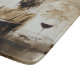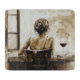 Glass cutting board featuring a serene and stylish scene: a woman sits with her back to the viewer on a vintage-style chair. Her messy bun and earthy-toned clothing add a touch of rustic charm, while a wine glass on the table beside her hints at a quiet moment of relaxation. The muted, warm tones and soft lighting create a cozy, intimate atmosphere, bringing a sense of calm and elegance to the kitchen. This cutting board is as functional as it is decorative, making it perfect for adding an artistic touch to meal prep or serving spreads.