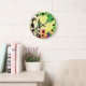 A great combination is wine with grapes. The perfect way to relax and unwind with a nice glass of wine and some grapes. This design is a lovely scene of three bottles of wine, a full wine glass and a grape vine. This wine with grapes design looks great on this clock. Perfect for yourself or as a gift