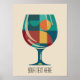 An abstract illustration of wine glasses in a stylish mid century modern design. This bright and contemporary design is perfect for any room or home bar with a bold color palette and aesthetic design. The geometric design on a classic elegant glass adds interest and will make your wall art stand out. Great as a statement or focal point and for adding a splash of color to your walls. Customizable text to make your poster your own!