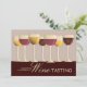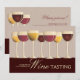 Beautifully hand-drawn wineglasses of a variety of red and white wines are just waiting for the tasting! Make the perfect design for a wine themed party. The wine glasses are delicately shaded and rest against a soft taupe beige background. Offered here on the basic paper stock, this design would also look especially wonderful on linen or felt. Coordinatting postage stamps are also available.