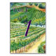 Watercolor painting of the soft green rolling hills full of grapes vines at a country vineyard. Words note "Table 1" but can be personalized with your own words and messages. Create your own unique one-of-a-kind table card design by customizing these template red wine beach art table cards for your wedding, reception, or other personal event information.