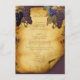 Vineyard, winery, Wedding menu. Old paper background with curled and torn edges on a deep burgundy background. Pretty purple, and blue grape vine accents.