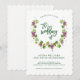 These stylish wedding invitations feature a modern watercolor wreath decorated with purple grapes, green leaves, and vines, on a white background. Trendy matching green typography is featured in the center. We have used art from LABFcreations.