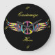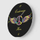 Winged Hippie Peace Symbol Thunder_Cove Large Clock